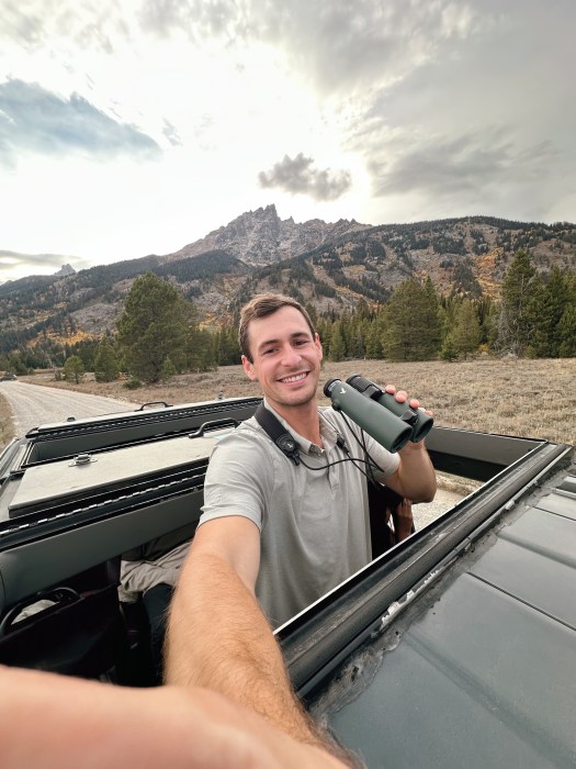 We met our guide in Jackson Hole in the late afternoon. After a quick introduction, we climbed into Ecotour Adventures’ comfortable safari-style vehicle, complete with a pop-up roof that let us stand and take in the sweeping views as we set off toward Grand Teton National Park.
