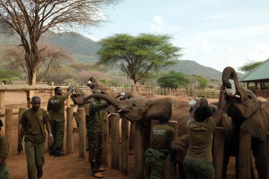 The sanctuary rescues and rehabilitates orphaned elephants that have lost their mothers due to drought, human-wildlife conflict, or other natural causes. The goal is always to return the elephants to the wild once they are strong enough. Samburu caretakers, many of whom grew up herding livestock in this landscape, play a central role in caring for the elephants and guiding their rehabilitation.