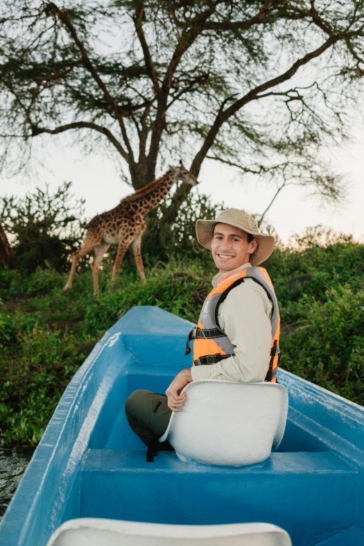 One of our favorite experiences of the trip was visiting Crescent Island. This private wildlife sanctuary is reached by boat and is one of the few places in Kenya where you can walk safely among giraffes, zebras, and antelopes. We went in the late afternoon, and the golden light, quiet atmosphere, and open landscapes made the experience feel incredibly special.